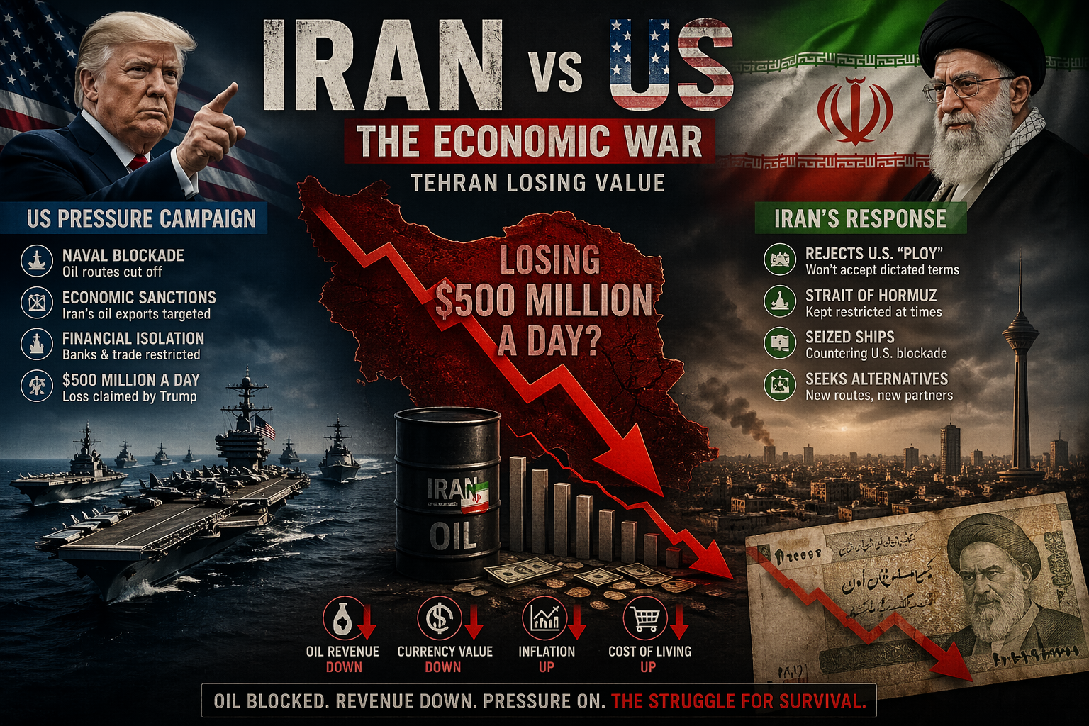 US President Donald Trump recently claimed that Iran is “collapsing financially”, alleging the country is losing up to $500 million every single day due to a US-led maritime blockade.But Iran isn’t buying that narrative. Officials in Tehran have quickly dismissed the claims as propaganda, calling it a “ploy” designed to pressure them in going ,fragile negotiations.