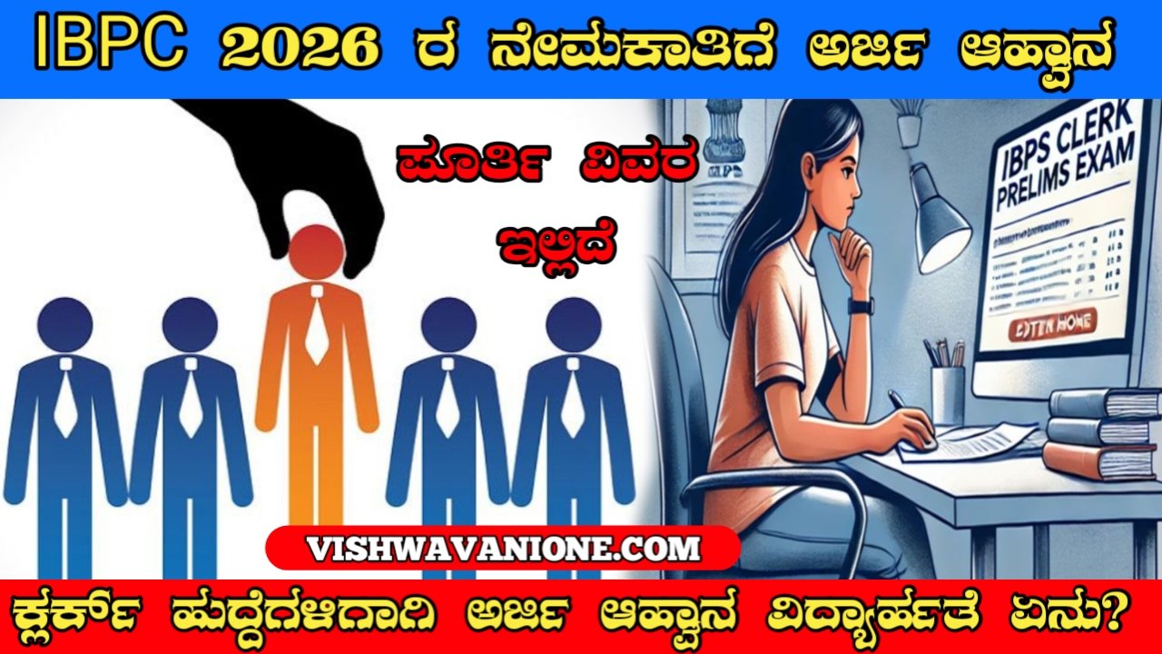 IBPS ನೇಮಕಾತಿ 2026 ರ 15800 ಕ್ಲಾರ್ಕ್ ಉದ್ದೆಗಳಿಗೆ ಅರ್ಜಿ ಆಹ್ವಾನ, ವಿದ್ಯಾರ್ಹತೆ ಮತ್ತು ವಯೋಮಿತಿ ಇಲ್ಲಿದೆ.